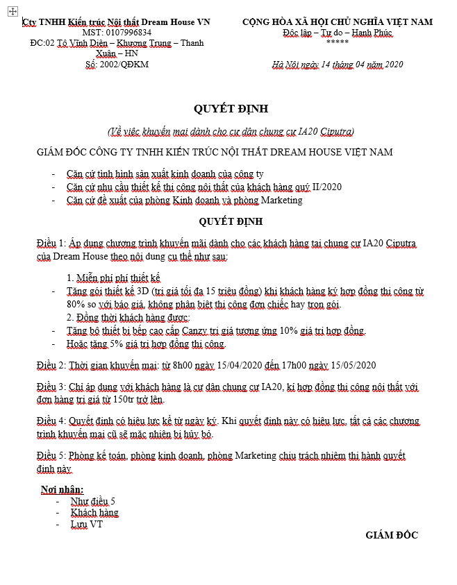 Th05 / 11 KHUYẾN MẠI DÀNH RIÊNG CHO CƯ DÂN IA20 CIPUTRA Dưới đây là nội dung của chương trình khuyến mại, mời quý khách hàng tham khảo thêm: Dưới đây là hình ảnh thiết kế 3D cho nội thất căn hộ mẫu của Nội thất Dream House tại phòng 709 tòa A2 chung cư IA20 Ciputrra. Tags: , Chia Sẻ :